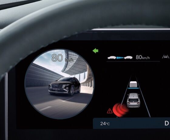 Khi có tín hiệu chuyển làn, nếu tiềm ẩn nguy hiểm va chạm phía hông xe, hệ thống sẽ đưa ra cảnh báo. Nếu sau tín hiệu cảnh báo, nguy hiểm gia tăng, hệ thống sẽ kiểm soát để phòng tránh va chạm.