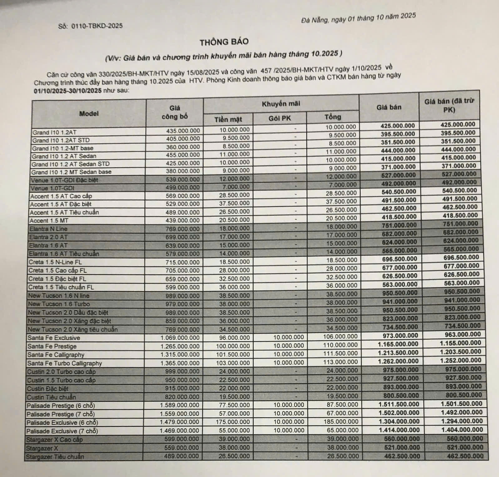 Tháng 10/2025 – Liên doanh Ô tô Hyundai Thành Công Việt Nam (HTV) chính thức khởi động chuỗi ưu đãi toàn diện dành cho khách hàng trong tháng 10. Chương trình nổi bật với gói “Bảo hành 8 năm – An tâm vận hành”, hỗ trợ tài chính lên tới 200 triệu đồng, cùng quyền lợi giá trị khác áp dụng cho các dòng xe Hyundai.